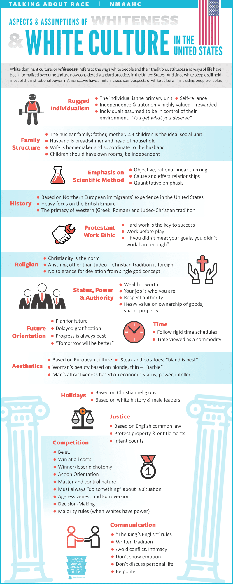 The chart claimed that traits such as individualism, hard work, punctuality, the nuclear family, and even “objective, rational linear thinking” were products of “white-dominant culture.” Critics across the spectrum blasted the display for suggesting that these values were inherently racial rather than universal.